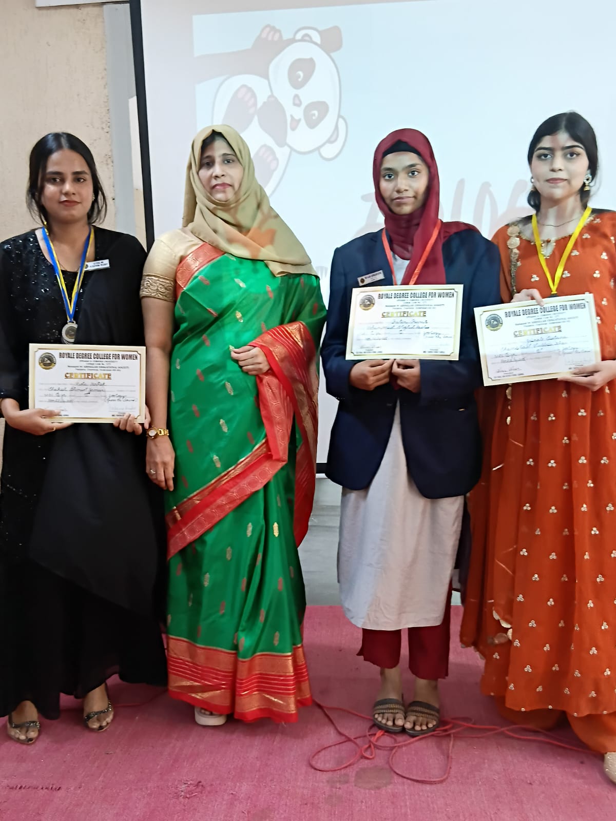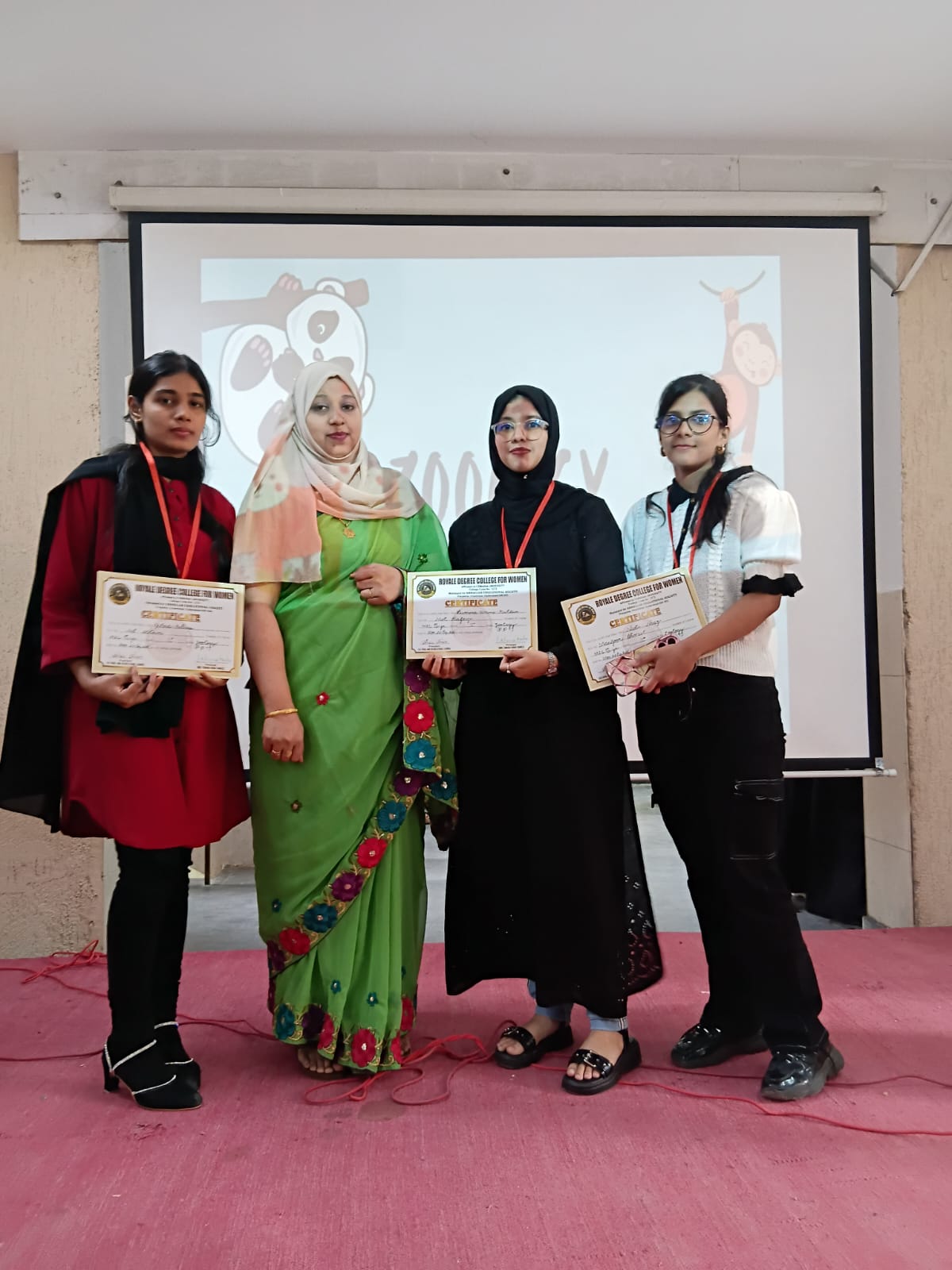 The world Animal Day was celebrated on 22nd of September 2025.It was organized by Mrs. Fouzia Sultana and Mrs. Syeda zakia Fatima under the guidance of the management of Royale Degree College For Women. The Event comprised various Competitions which includes Doddle Art, PPT, Animal Riddle, Animal Charade, Guess the sound of the Animal, Elocution, Paper origami, Clay Art, Role Play, Debate, and Research on hormonal imbalance - held between 17-20 September. The Journey of this event began with a field trip to Nehru Zoological Park on 11th of September 2025 in which students actively participated in acquiring knowledge about species of different phyla of kingdom ‘Animalia’, students made ppt and videos of them (photos of animals). The videos and ppts were displayed on 22nd September 2025 and then the prizes (certificates and medals) were awarded to the winners.