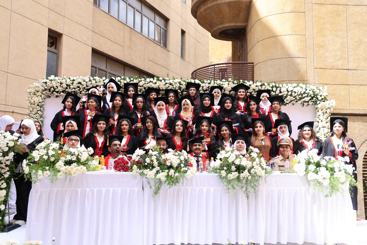 The Royale degree college for women celebrated the 12th convocation ceremony on 25th October 2025. The Principal warmly welcomed all the dignitaries to the event. The event was graced by esteemed dignitaries, including chief guest, Mr Badshah Khan, Magistrate, Criminal court and the Guest of Honour, Dr Loka Pavani, prior Koti women’s college, Dr Abdul Vakeel, Ph.D., LLM, Mr K.V. Shiva Kumar, Dean of Shri Chaitanya institution, Mr Bala Krishna Mandapati, LLM High court and Mrs K. Lakshmi, Sub inspector of Police. Their presence added immense prestige and significance to the occasion inspiring the graduates with insightful addresses. The event began by the recitation of holy verses of Quran followed by Hamd e barri. The welcome address was given by Principal of RDCW Mrs Tahera Farha Tabrezi "Today marks a substantial milestones in the lives of our students. Their hard work and dedication have culminated in this moment of achievement". On this auspicious occasion I would like to congratulate all the graduating students, their parents and staff and extend my best wishes for your future. All the graduates were awarded with degree certificates and momentos. The first three overall college toppers are Sameera Tabassum, Ayesha Tabassum and Muneera Fatima were awarded by cheque, medals, trophy and certificates in recognition of their achievements. Nusrath Fatima and Shazia Banu were awarded with a cheque and certificate for 100% attendance marking the benchmark for others. It is a moment of immense pride to witness yet another cohort of graduates stepping out into the world carrying forward the legacy of their alma meter. The event concluded with vote of thanks by student college vice president Nasera Ayman. She extends the heartfelt congratulations to all the dignitaries, staff, parents and graduates wishing them success in their future endeavors.