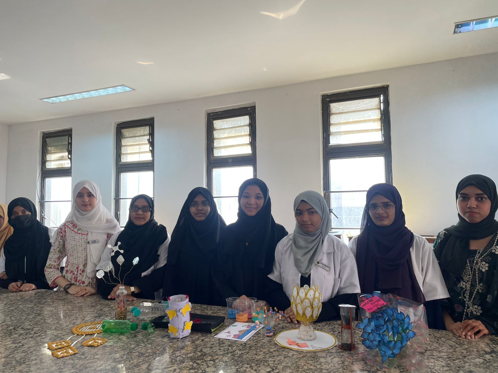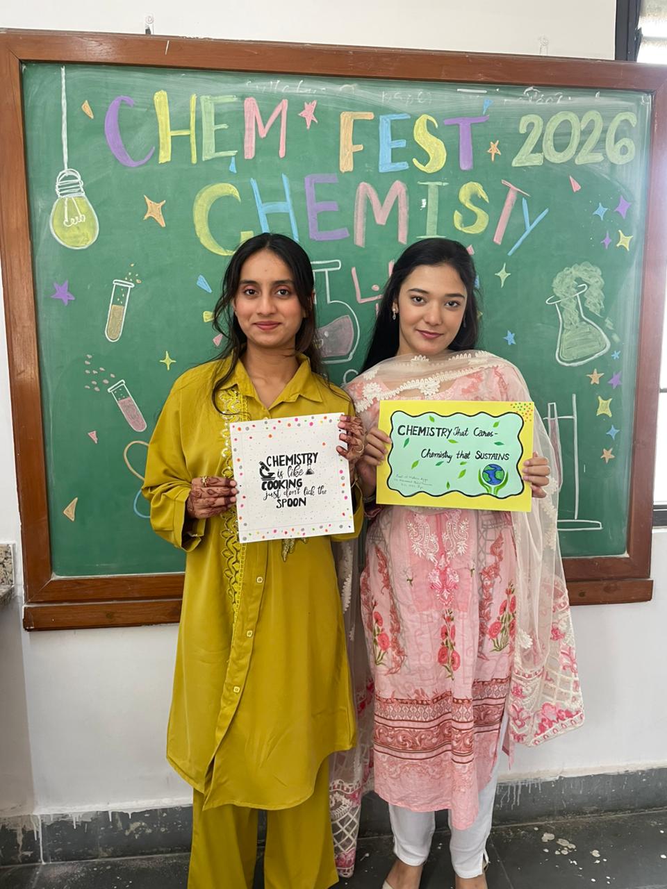 The Dept. of chemisty organised chemfest 2026 – chemspectra is a week long academic and creative event, from 1st to 7 th Jan 2026. The event was organised by Mrs. Fatima Asfia and Mr. M. A Rasheed under the Guidance of Mrs. Nazia Nasir, cultural and recreational council president and vice-principal, and Honorable Mrs. Tahera farha Tabrezi, principal. The event aimed to promote interest, creativity and practical understanding of chemistry among B.Sc. Students. The event includes power point and poster presentations hands on activities like Make your own product, Best out of chemical waste, chem games, rangoli, clay art, slogan writing ,meme contests, and a guest lecture on career opportunities in chemistry. Chem fest helps students learn the subject beyond text books by encouraging concept clarity, critical thinking team work and creativity. Overall chemfest 2026 promotes active learning Confidence, building and scientific curiosity among students.